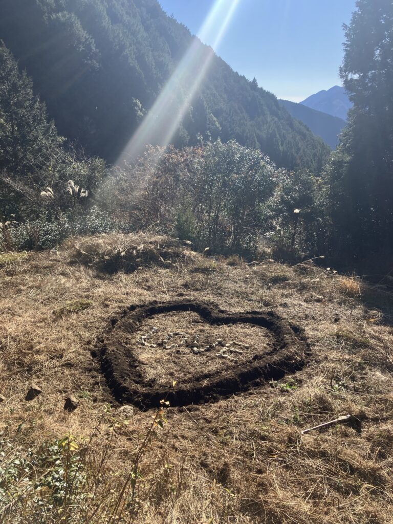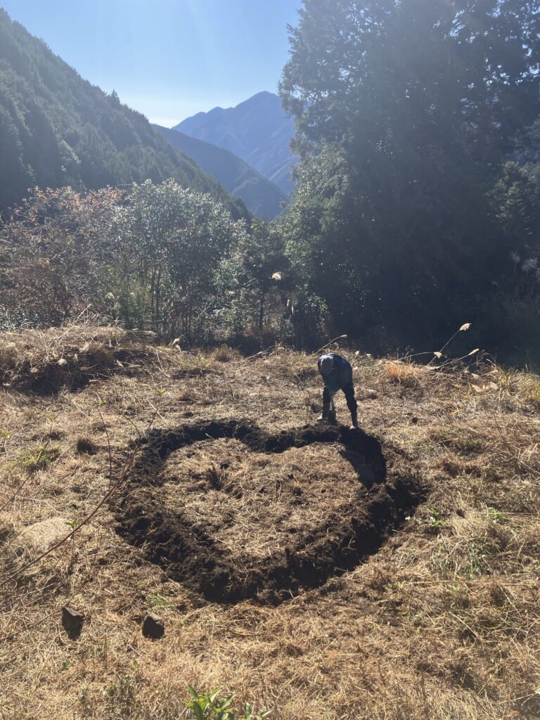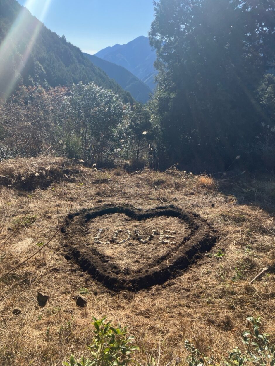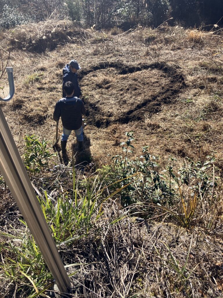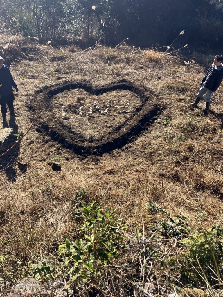 何を思ったか、男3人でハートの畝。